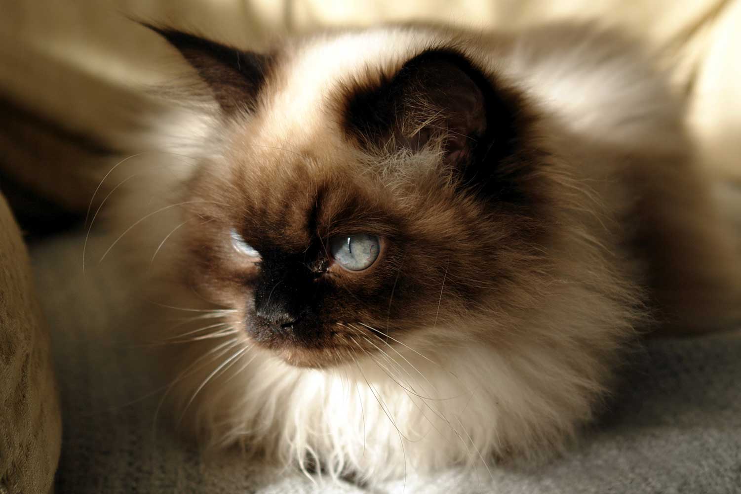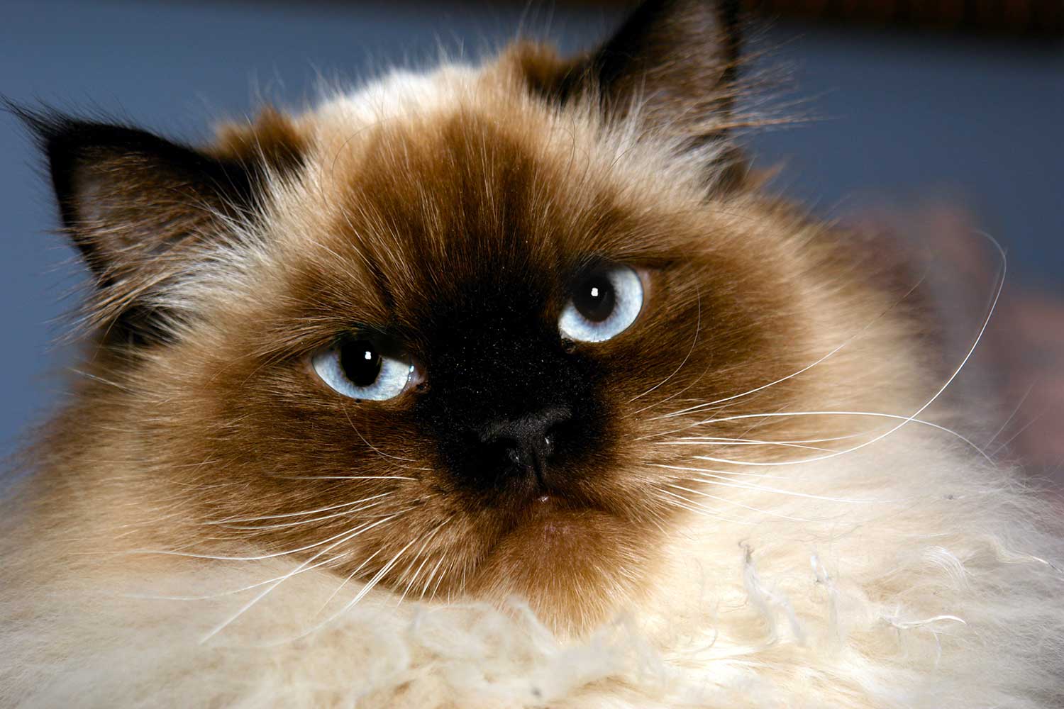 Τρίχωμα: κατατάσσεται στις μακρύτριχες φυλές, με πυκνό και αφράτο τρίχωμα το οποίο περιβάλει όλο το σώμα. Χαρακτηριστικό της φυλής αυτής είναι μία γούνα που περικλείει το μέρος του αυχένα και καταλήγει ανάμεσα στα πόδια με την μορφή χαίτης. Το χρώμα του κυρίως σώματος πρέπει να είναι λευκό, κρεμ, σε αποχρώσεις του καφέ, μπλέ , ενώ στην περιοχή του προσώπου (μάτια, μουσούδα, αυτιά), στις άκρες των ποδιών, στα πόδια και στην ουρά το χρώμα είναι πιο σκούρο από το υπόλοιπο σώμα.
