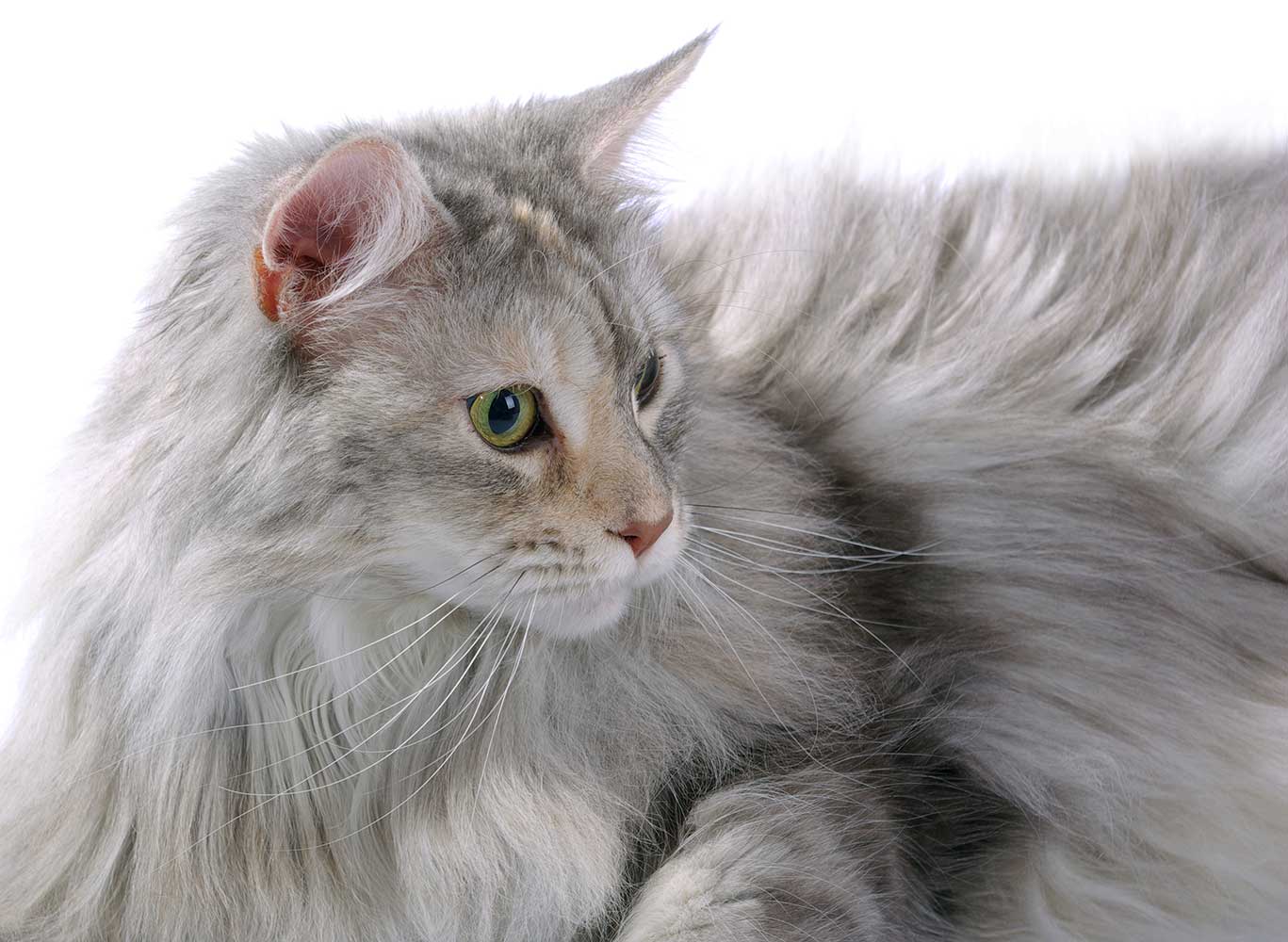Τρίχωμα: Είναι μακρύτριχη φυλή και στο χάιδεμα έχει την αίσθηση του απαλού και μεταξένιου τριχώματος. Το μήκος του δεν είναι ίδιο σε όλο το σώμα. Στην περιοχή του κεφαλιού και στους ώμους το τρίχωμα είναι κοντύτερο, ενώ στην κοιλιά και στα πόδια είναι μακρύτερο. Σε κάποιες από αυτές είναι εμφανής μία γούνα ανάμεσα στα μπροστά πόδια δίνοντας την αίσθηση χαίτης λιονταριού. Όλα τα χρώματα είναι αποδεκτά στην φυλή αυτή, εκτός από σοκολατί, το λιλά, το φαιοκίτρινο καθώς και τα σχέδια των Ιμαλάιων και της Βιρμανίας.