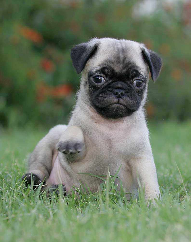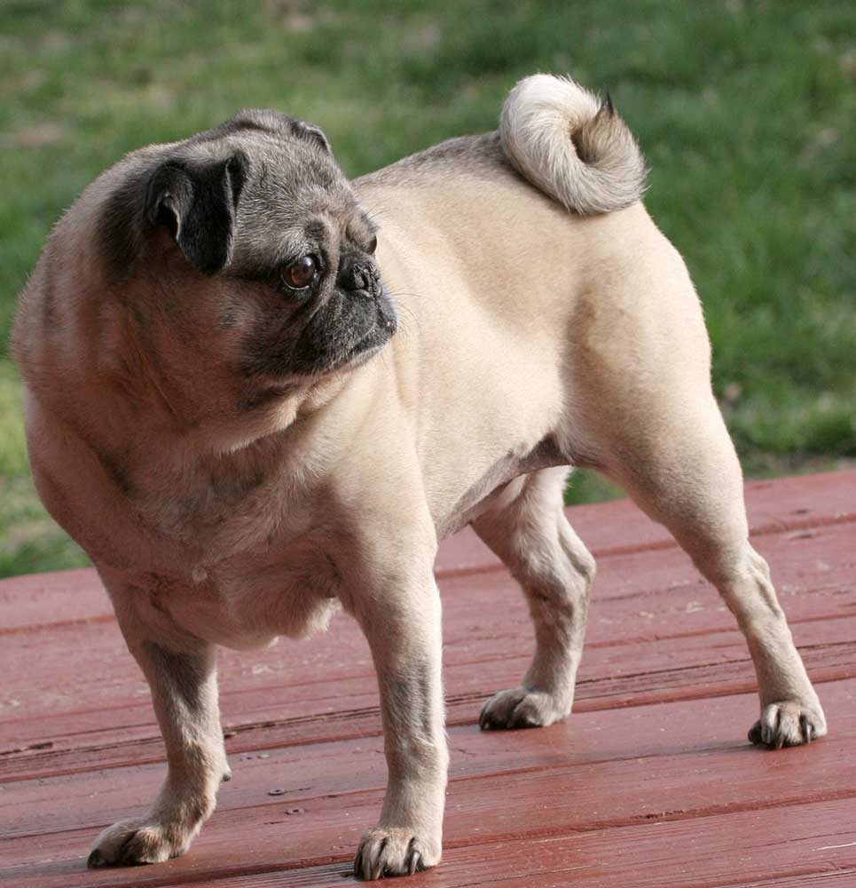 Η εμφάνισή του υπολογίζεται στο 400 π.Χ. και είναι άλλη μια αρχαία κινέζικη φυλή. Πρόκειται όμως για το σκύλο του λαού και όχι του παλατιού, όπως το Pekinois. To όνομα είναι αγγλικό, ενώ σε άλλες χώρες ονομάζεται διαφορετικά, όπως στη Γαλλία Carlin, στην Ιταλία Carlino και στη Γερμανία Mops.
