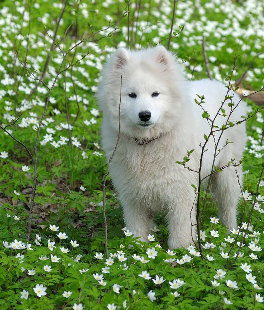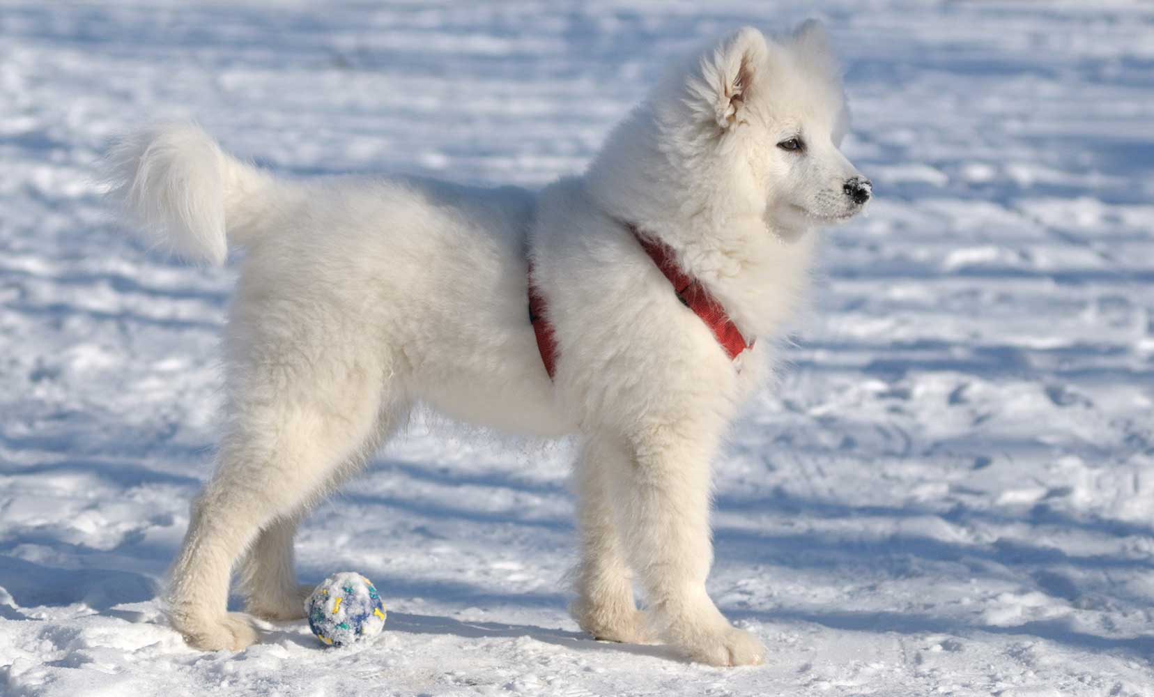 Χρώμα τριχώματος: Το χρώμα του είναι πάντοτε λευκό ή υπόλευκο. Είναι μακρύ, πλούσιο και πυκνό. Έτσι το ζώο είναι ζεστό για να μπορεί να ανταπεξέλθει στο δύσκολο χειμώνα της Σιβηρίας. Καθαρίζεται εύκολα και σε γενικές γραμμές απαιτεί λίγη περιποίηση, σχετικά με το μέγεθος του.