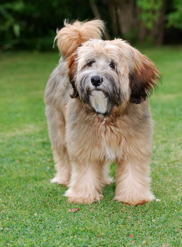 Χρώμα τριχώματος: Το τρίχωμα είναι πλούσιο, όχι ίσιο αλλά κυματιστό, μεσαίου μήκους. Τα μακριά βλέφαρα συγκρατούν την τούφα μαλιών που πέφτει μπρος στα μάτια, ώστε να μην εμποδίζεται η όραση. Όλα τα χρώματα είναι επιτρεπτά, είτε μονόχρωμα είτε σε συνδυασμούς. Ο μοναδικός περιορισμός που υπάρχει είναι ότι η μύτη πρέπει να είναι μαύρη, ανεξάρτητα από το χρώμα του τριχώματος.
