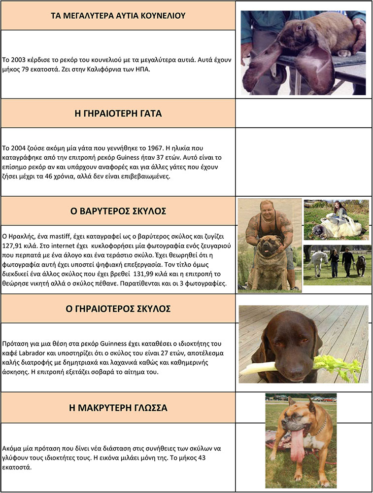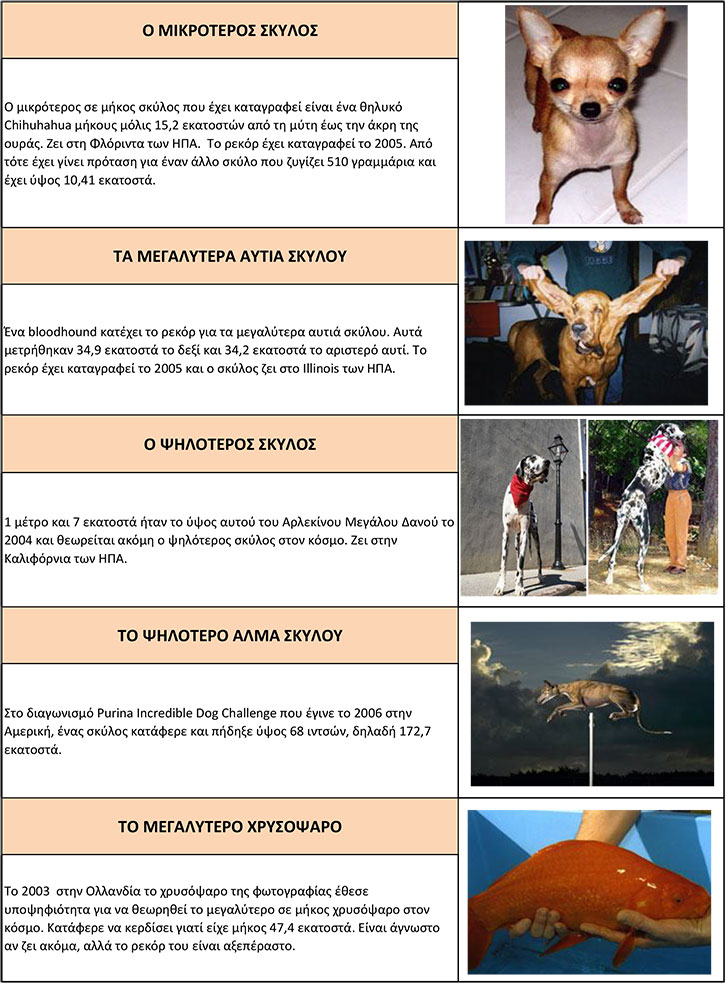 Υπάρχουν, λοιπόν, και ζώα που κατέχουν κάποιο ρεκόρ. Στο αρχείο pdf θα βρείτε αρκετά απίστευτα που μάλλον θα περάσει αρκετός καιρός μέχρι να εκθρονιστούν. Σύντομα θα προστεθούν και άλλα, οπότε ανά τακτά διαστήματα, ξαναδιαβάστε το συγκεκριμένο άρθρο.